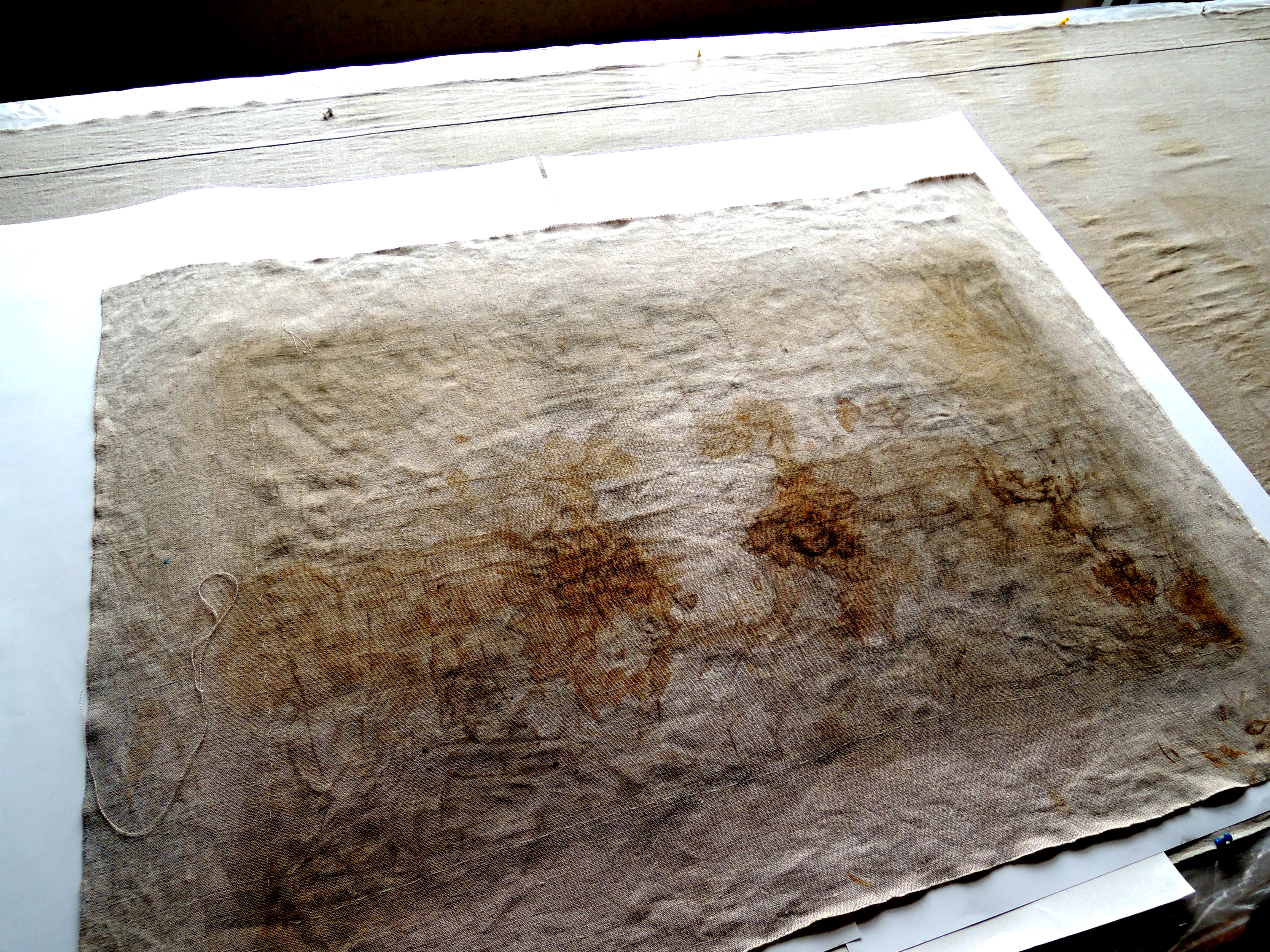 Plátno šířky 111 cm a délky 436 cm je utkané tradiční metodou ručně na tkalcovském stavu. Následně bylo malované krví, vlhčené vodou i propalováno ohněm tak, aby se co nejvěrněji podobalo originálu.